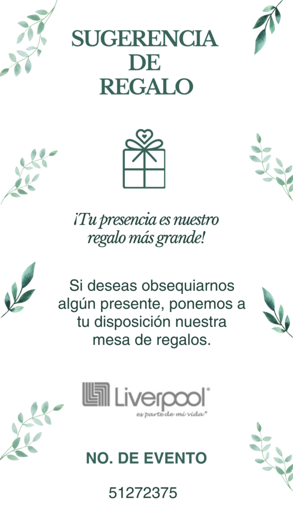 NUESTRA BODA Sarahí & Jebneel 02 Diciembre 2023 Dias Horas MIn Seg Reproductor de Música Tu navegador no soporta la reproducción de audio. Cuando te das cuenta de que quieres pasar el resto de tu vida con alguien, quieres que el resto de tu vida comience lo antes posible. CEREMONIA EX HACIENDA VENTA DE GUADALUPE Sabado, 02 de Diciembre 2023 1:30 PM Carretera Mexico Huejutla Km 24 Omitlán Hgo. NUESTRA HISTORIA IR A MESA DE REGALO CON LA NOVIA CON EL NOVIO ¡Gracias por ser parte de uno de los mejores días de nuestra historia!Con amor: Sarahí & Jebneel